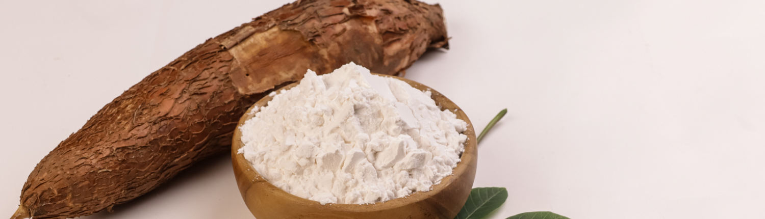 Tapiokastärke wird durch ein mechanisches Verfahren aus den Wurzeln der Cassavapflanze gewonnen. Der Cassavastrauch ist in tropischen Ländern beheimatet.